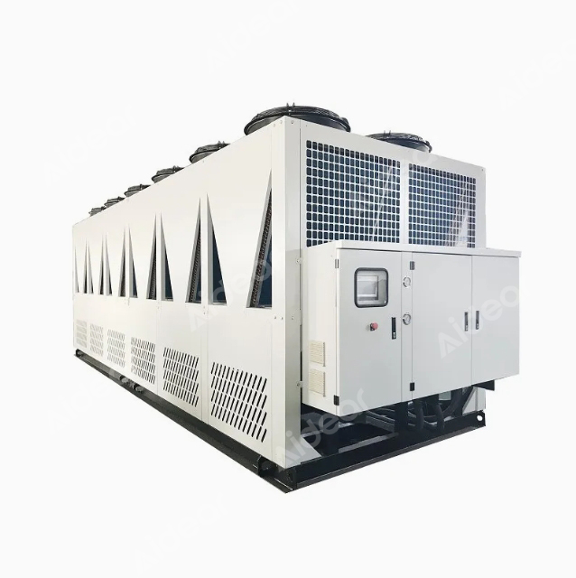 The 20-100 ton industrial air-cooled chiller from Changzhou Aidear is designed for robust cooling in demanding industrial environments. Built with precision and certified with CE, this chiller ensures stable performance for processes like chemical equipment cooling and reaction kettle operations.
