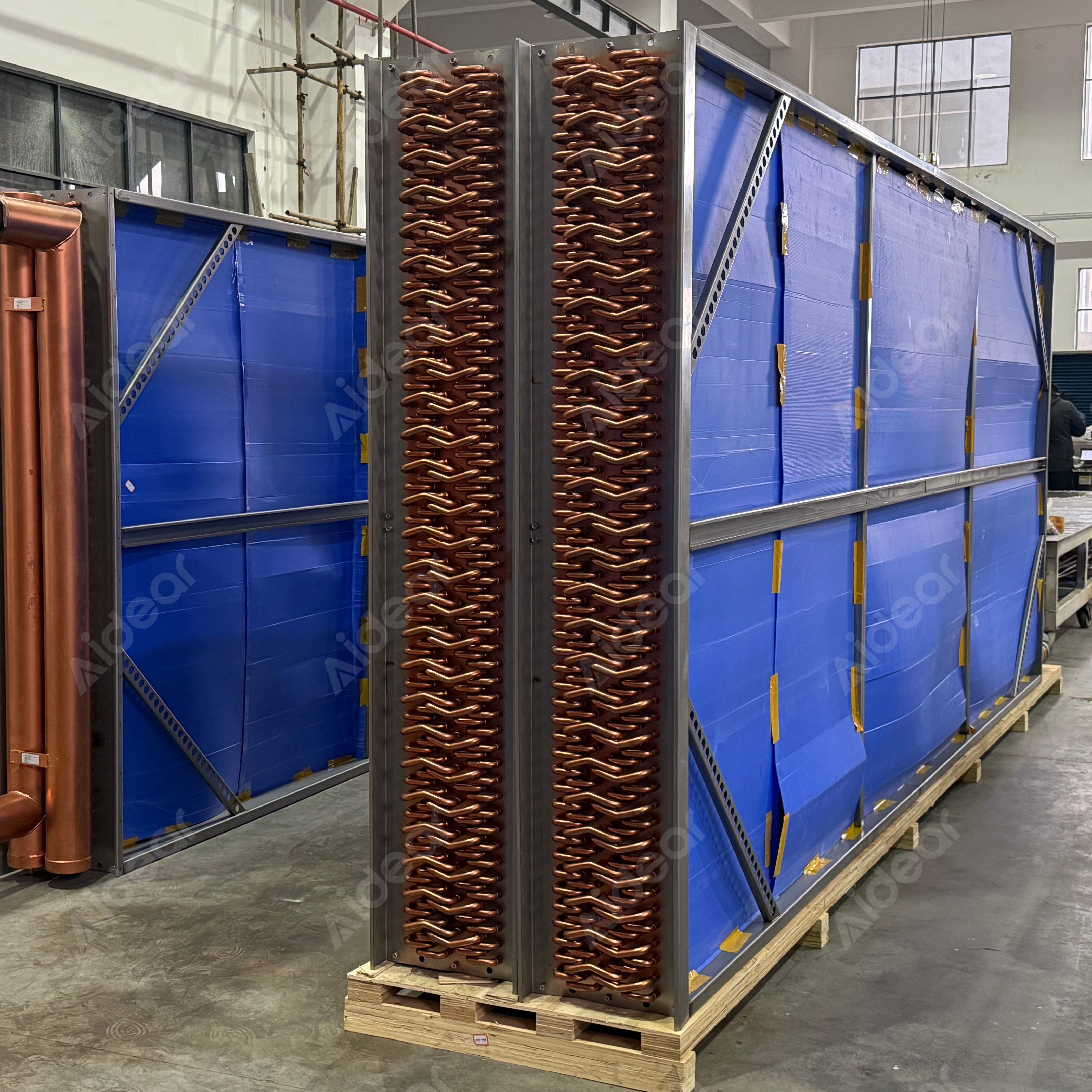 ఇండస్ట్రియల్ కాపర్ ట్యూబ్ ఫిన్ హీట్ ఎక్స్ఛేంజర్ అనేది అధిక-పనితీరు గల, భారీ-డ్యూటీ కూలింగ్ సొల్యూషన్, ఇది డిమాండ్ చేసే పారిశ్రామిక మరియు వాణిజ్య అనువర్తనాల కోసం రూపొందించబడింది. దట్టమైన బహుళ-వరుస ఉంగరాల నమూనాలో అమర్చబడిన ప్రీమియం రాగి గొట్టాలతో నిర్మించబడింది మరియు పెద్ద-ఉపరితల నీలం-పూతతో కూడిన రెక్కలతో జత చేయబడింది, ఈ ట్యూబ్ ఫిన్ ఉష్ణ వినిమాయకం అసాధారణమైన ఉష్ణ బదిలీ సామర్థ్యాన్ని మరియు నమ్మకమైన దీర్ఘకాలిక పనితీరును అందిస్తుంది.